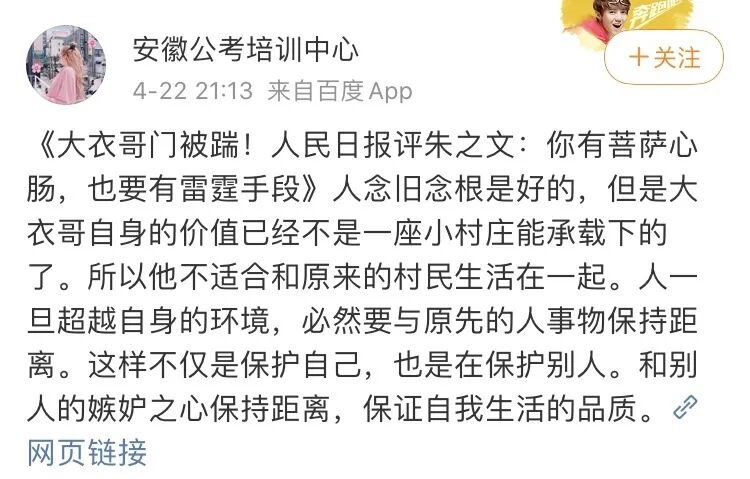 大衣哥是普遍现象,谁也改变不了、关乎人性、嫉妒、仇富和认知能力,大衣哥走出去偶尔回村看看就对了,物理隔绝才是唯一办法。